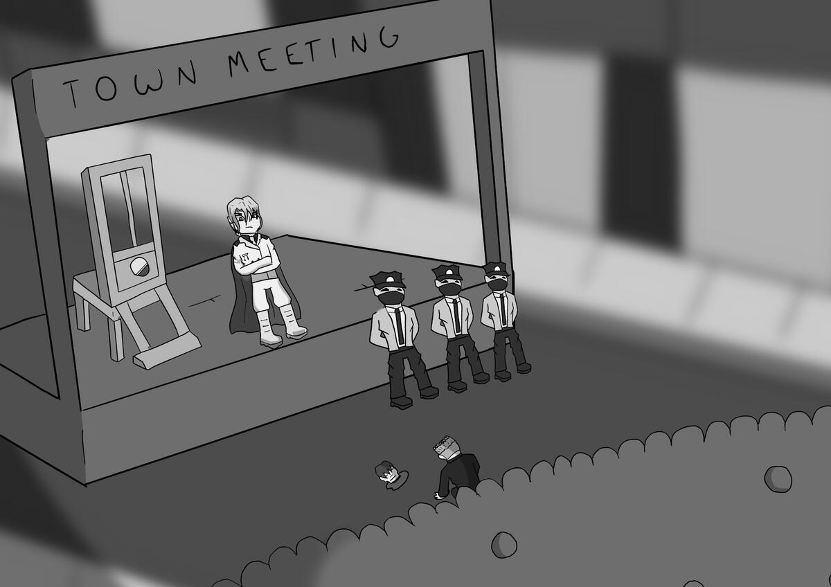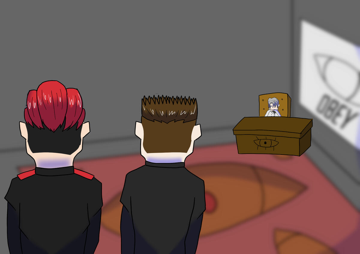 Introducing the Citizens vs the Rebels. Citizens all wear the same outfit so they fit into the dictator's standards. Meanwhile the Rebels are free to wear whatever they want so their outfits vary.